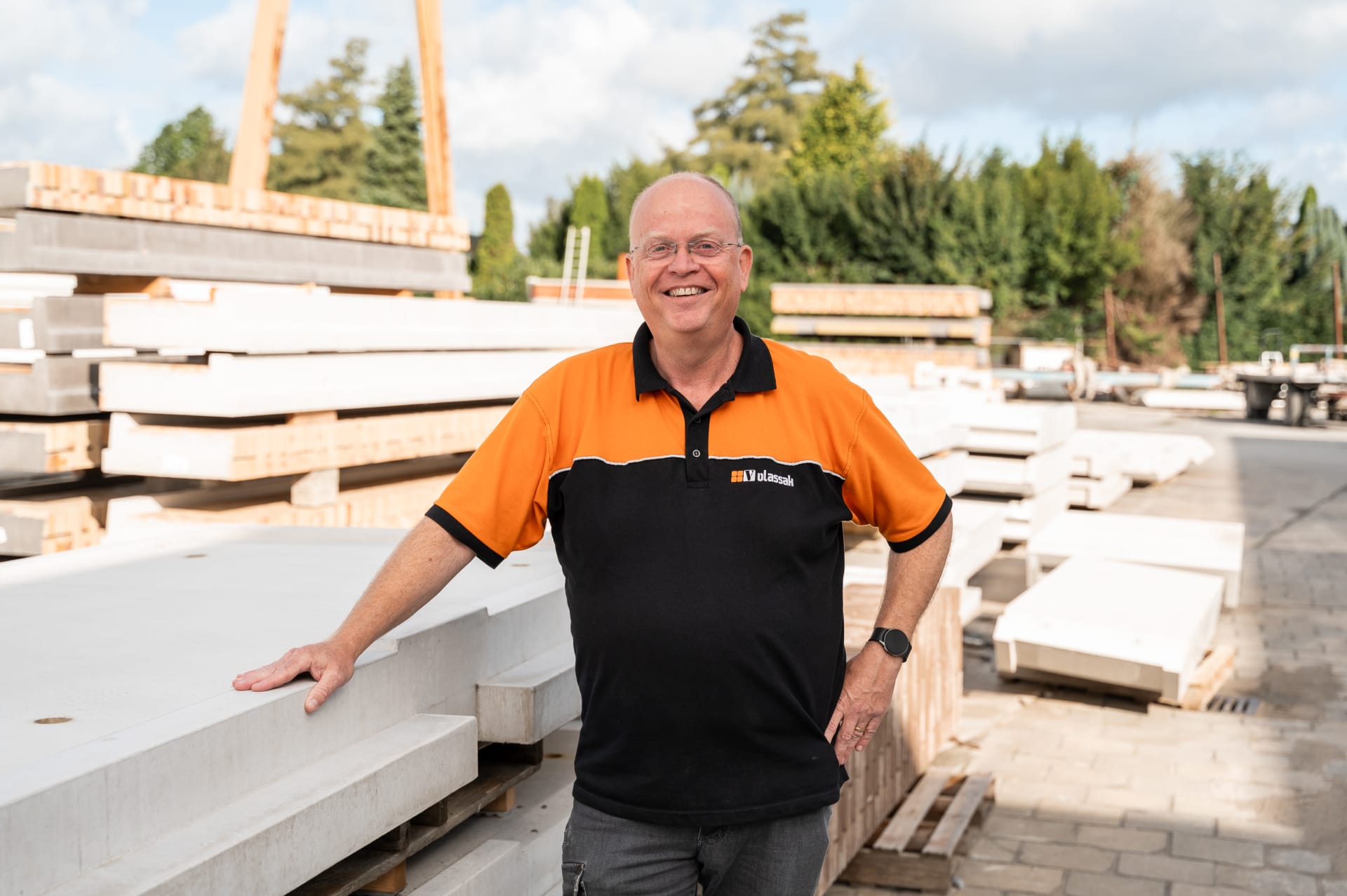 Je kunt wel zeggen dat ik oranje bloed heb. Ik werk al bijna 40 jaar bij Vlassak, waar ik ben begonnen op de bouw. Na een ongeval kon dat niet langer. Toen ben ik in de werkvoorbereiding gaan werken, maar ik ben niet de man om achter een bureau te zitten. Nu werk ik al een flinke tijd in onze betonfabriek als Assistent Productieleider.