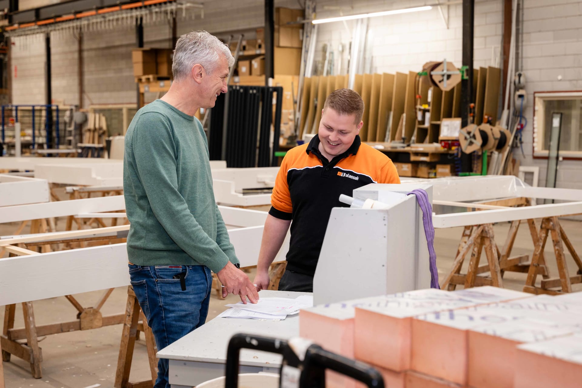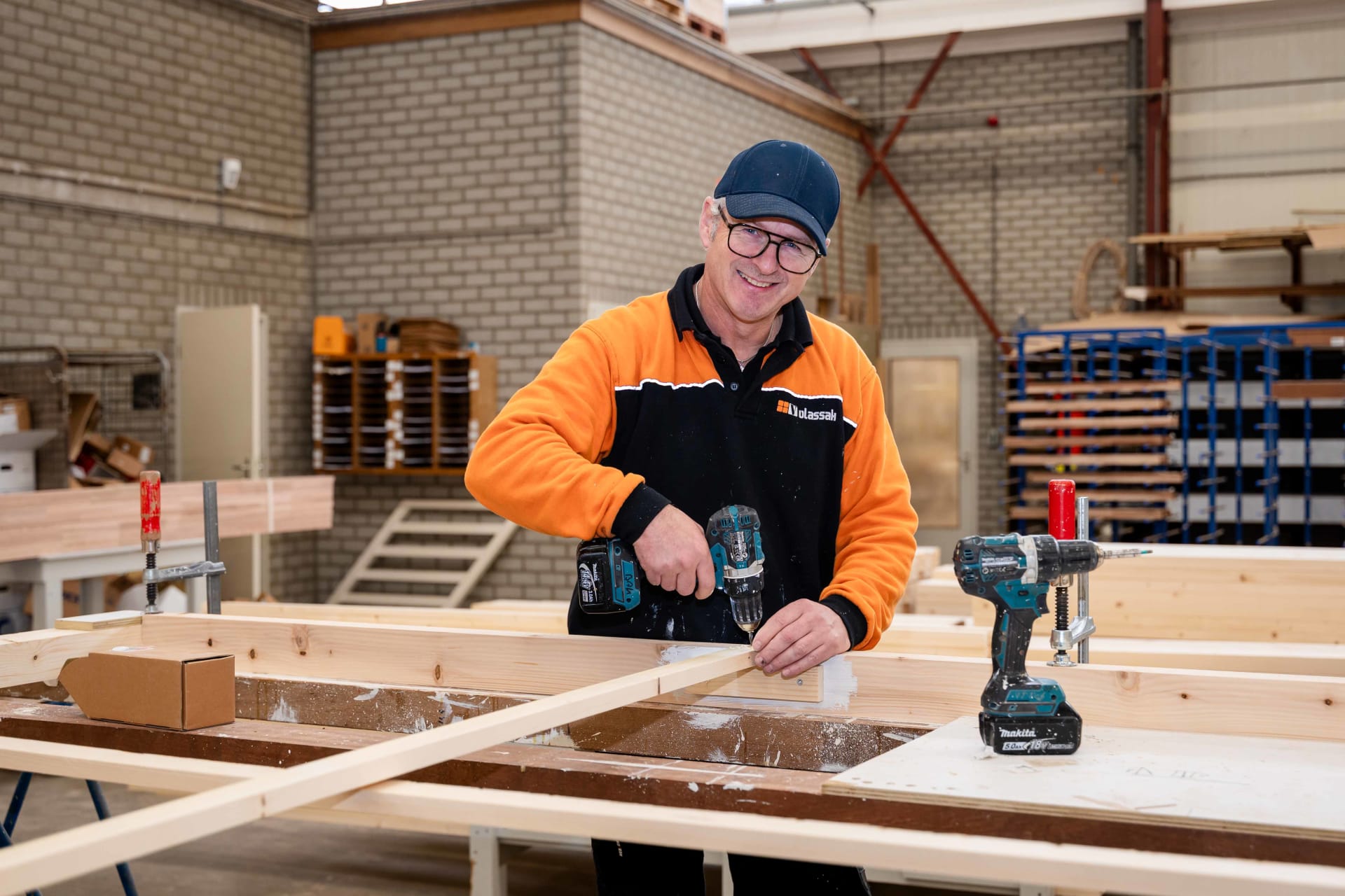 Als jonkie kwam ik hier al voor stage en vakantiewerk. Na mijn laatste stage kreeg ik te horen dat ze het fijn zouden vinden als ik bij Vlassak bleef werken. Dat ik daar ja tegen heb gezegd was een goede keuze. Ik voelde me snel thuis binnen het team. Veel collega’s werken al lang bij Vlassak, maar ik hoorde er meteen bij. Binnen de timmerfabriek zijn we met een klein, hecht team. We kijken naar elkaar om en dat familiegevoel is voor mij belangrijk.